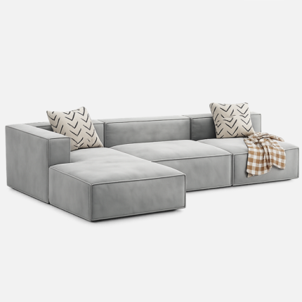 Ce canapé d’angle droit en forme de L est conçu pour offrir un équilibre parfait Revêtu d’un velours doux et élégant composé majoritairement de coton, il apporte une touche sophistiquée et chaleureuse à tout espace de vie.