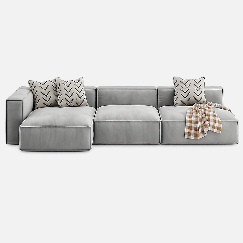 Un canapé d’angle élégant et modulable, pensé pour offrir confort, durabilité et esthétique dans les intérieurs contemporains.