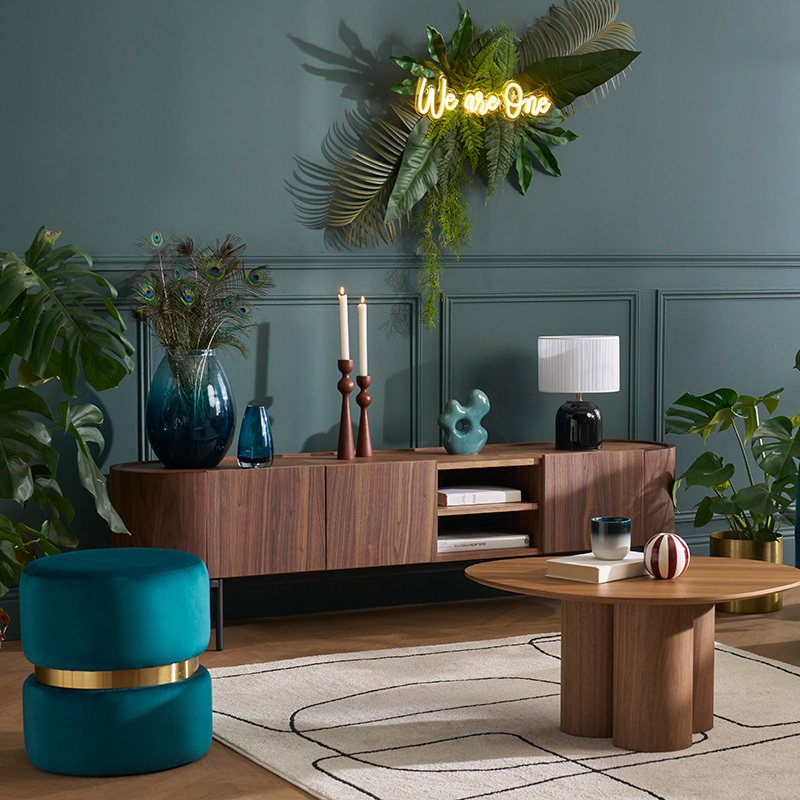 Le design mélange lignes minimalistes et angles arrondis, pour un style contemporain à inspiration rétro. Par ailleurs, les façades élégantes dissimulent deux grands espaces de rangement