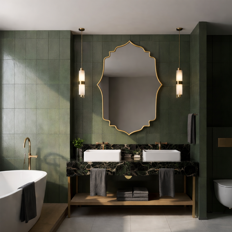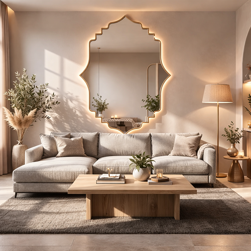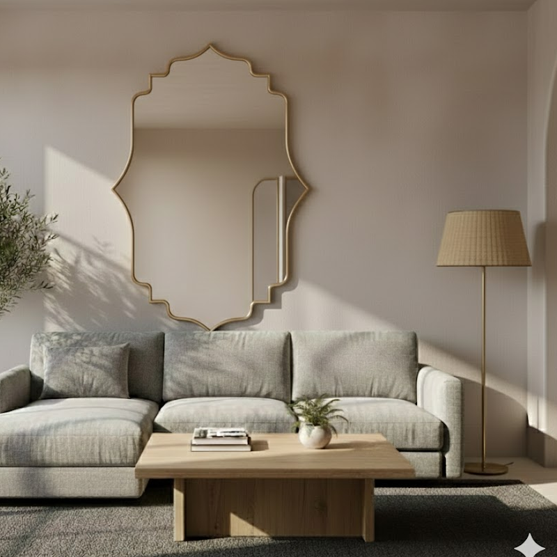 Miroir Aura Arabesque au design incurvé inspiré des lignes arabesques, idéal pour adoucir la lumière et sublimer vos murs.