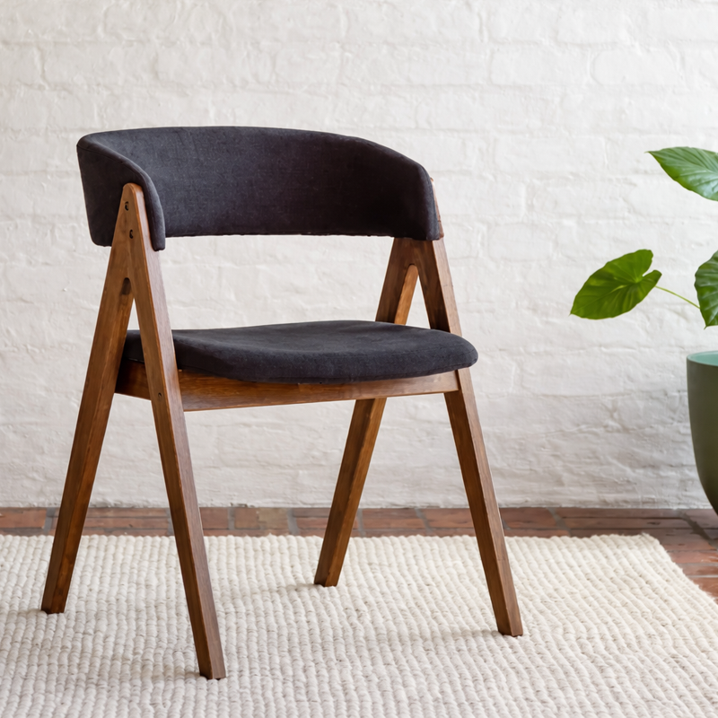 Les chaises complètent l’ensemble avec une silhouette moderne et un confort agréable. Leur assise et dossier rembourrés en tissu noir créent un contraste chic avec le noyer, tout en restant faciles à intégrer dans tous les styles.