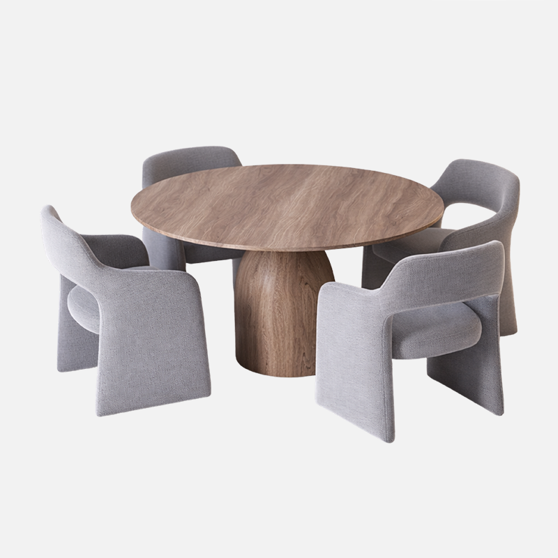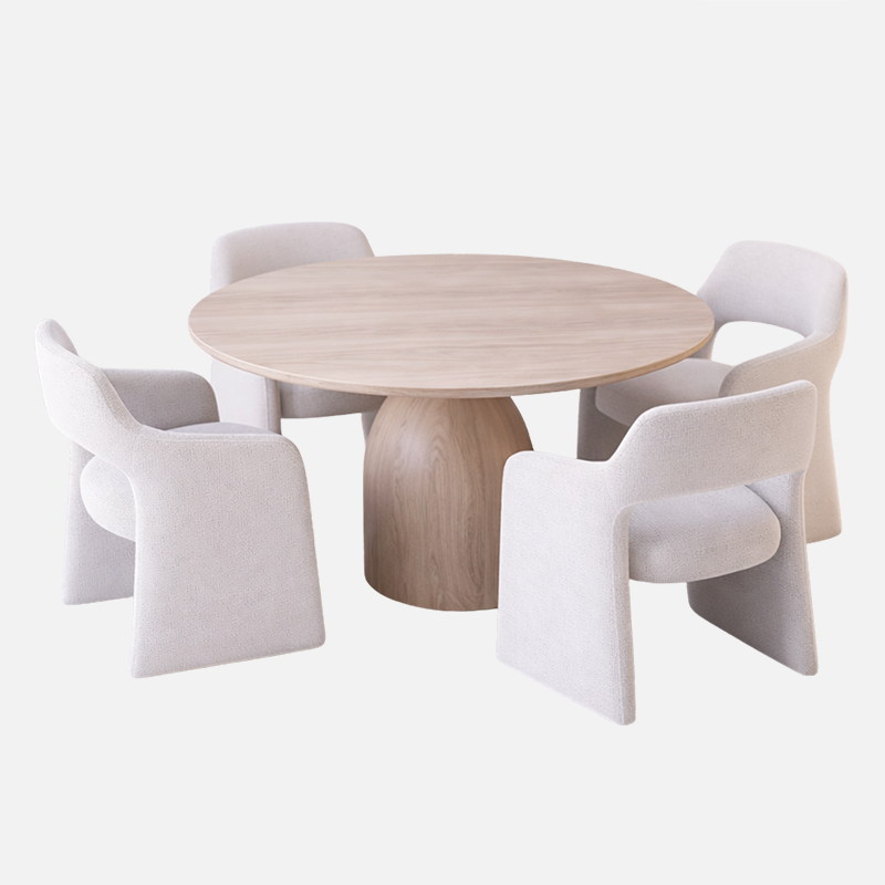 La salle à manger ÉLYSÉE se distingue par un style moderne aux formes douces et arrondies, inspiré de la nature. Son design équilibré crée une ambiance à la fois chaleureuse et élégante, qui s’adapte facilement aux intérieurs contemporains comme aux décors plus naturels.