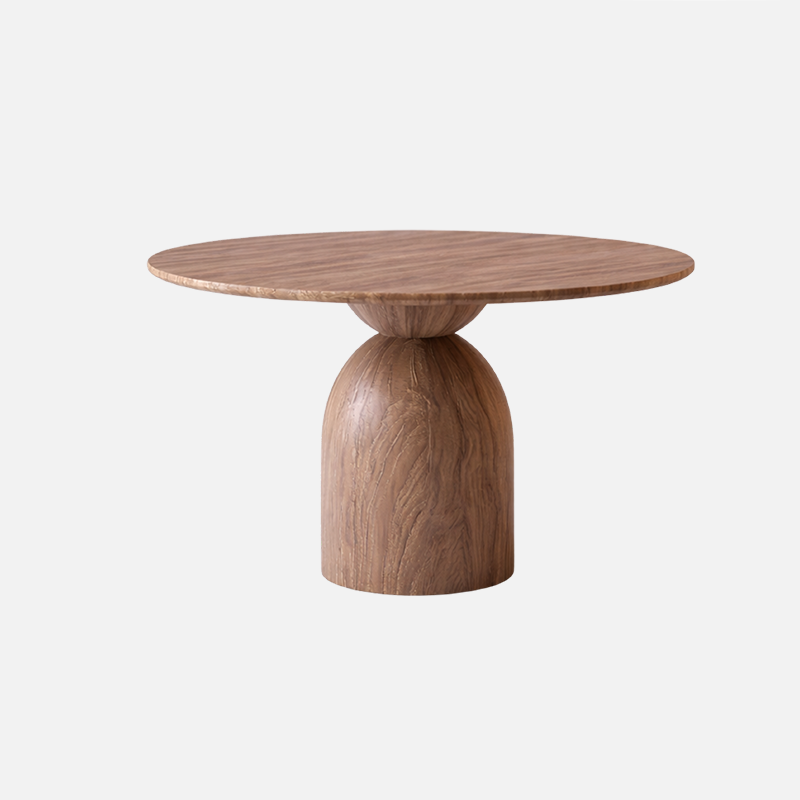 La table ronde est pensée pour rassembler et faciliter les échanges. Elle repose sur un pied central solide qui assure une bonne stabilité tout en laissant de l’espace pour circuler librement autour. Réalisée en bois massif ou en placage de qualité, elle possède une finition mate naturelle qui met en valeur les veines du bois et lui donne un aspect durable et intemporel. Elle peut accueillir confortablement de quatre à six personnes.