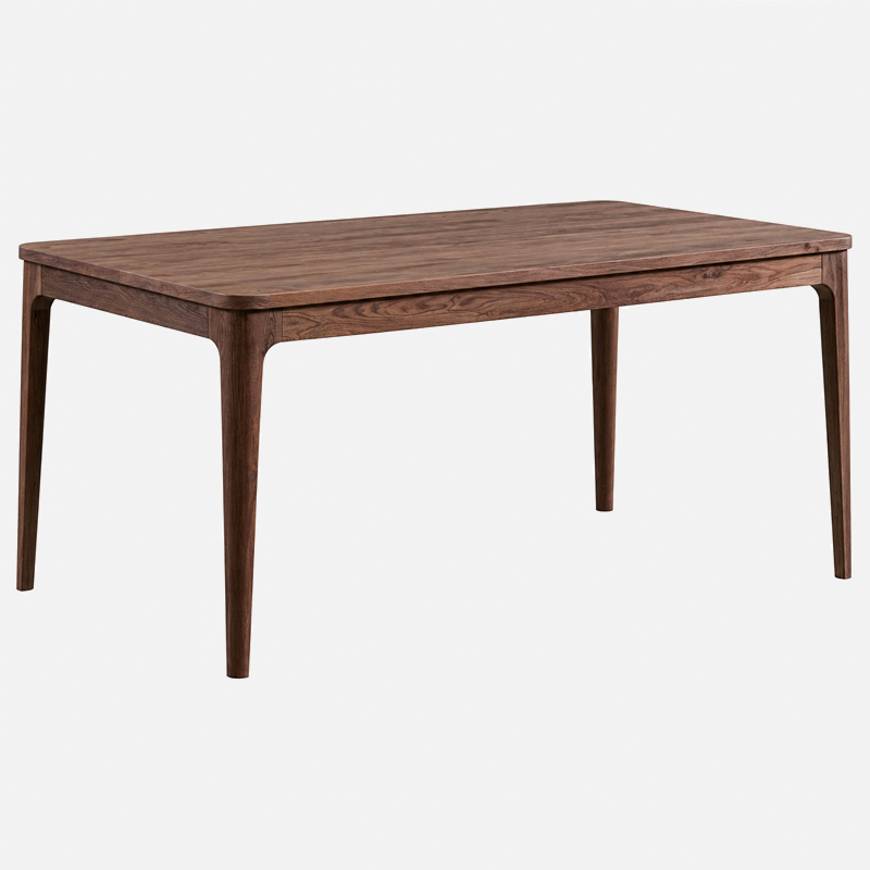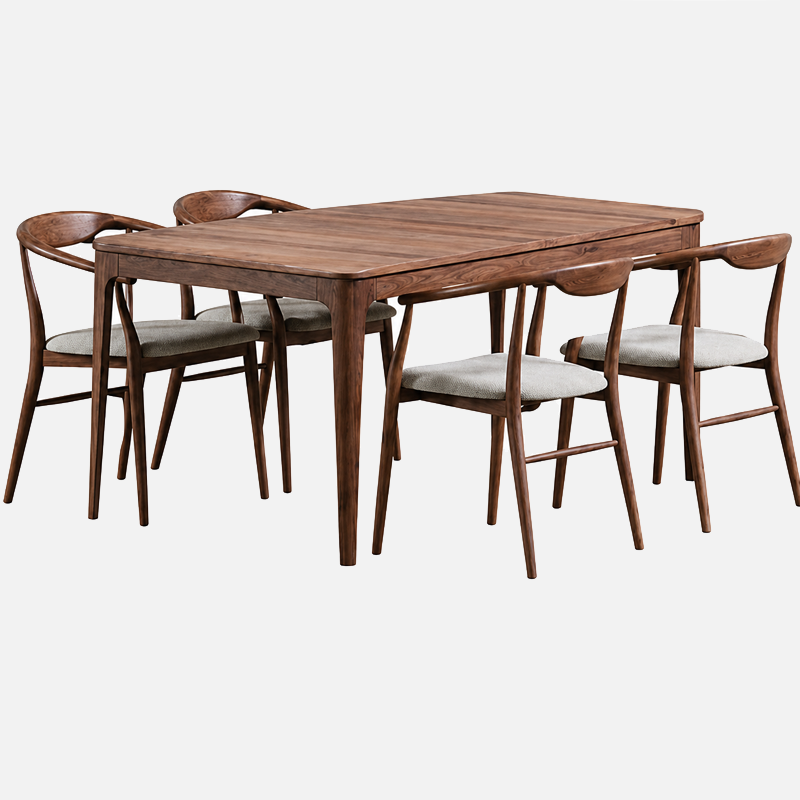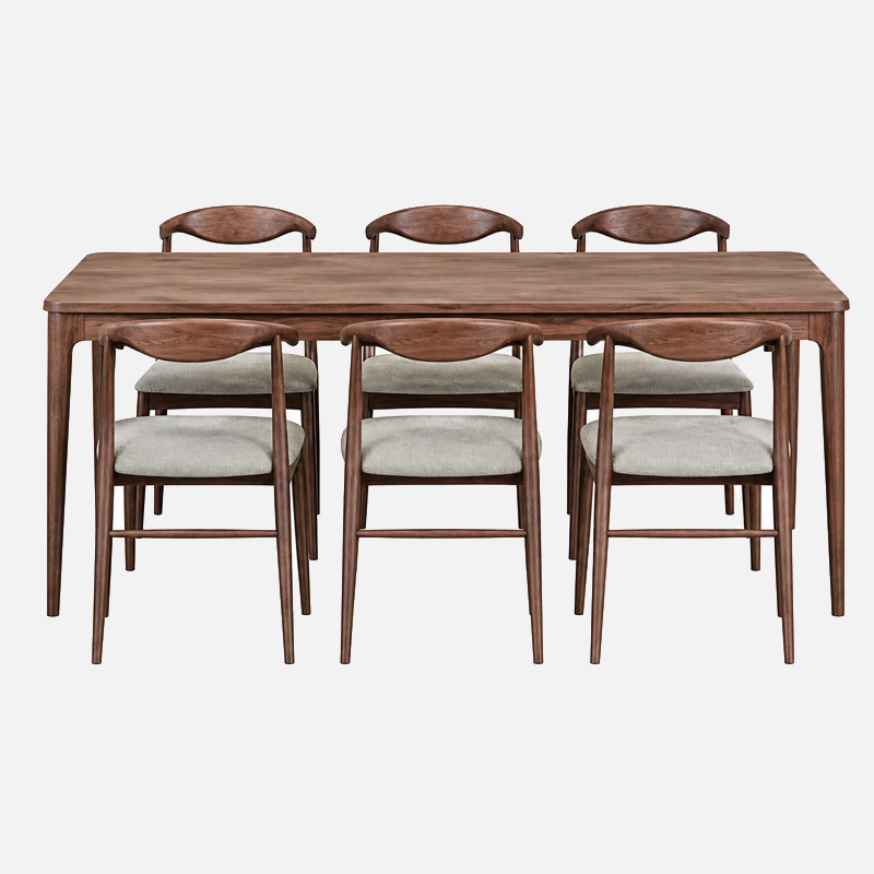 La table rectangulaire offre un espace généreux et une structure robuste assurant stabilité et durabilité. Réalisée en bois massif ou en placage de qualité, elle met en valeur les nuances naturelles du bois et accueille confortablement six personnes.